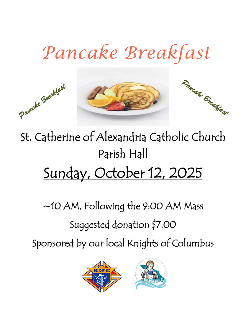> After the 9:00AM Sunday Mass, we welcome you to join us for coffee, juice, and light snacks in the courtyard provided by our volunteers. A donation jar is usually set up and all monies go directly to supporting parish operations. If it is raining after Mass, the get-together is usually moved inside the Parish Hall.