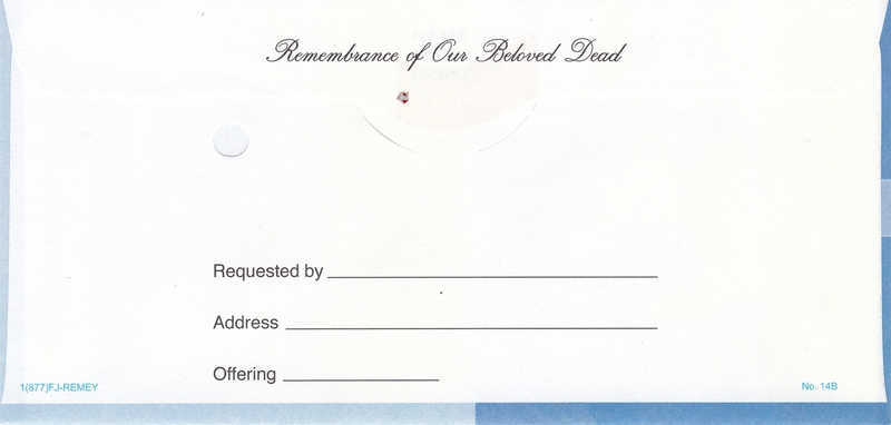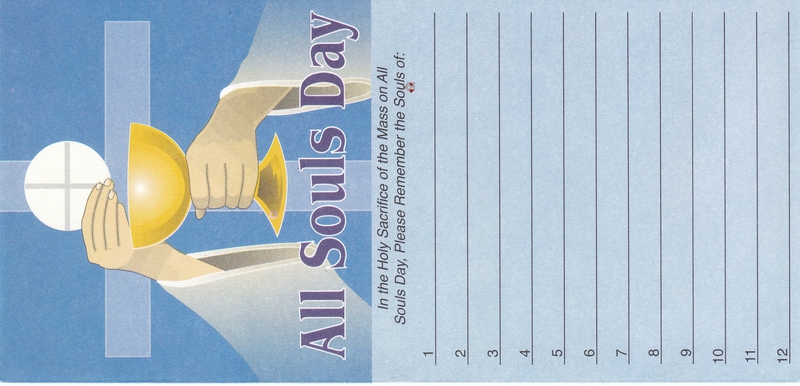Please only utilize the blue "All Souls" envelope for intentions and rememberance during Mass on November 2nd, the Feast of the Commemoration of All the Faithful Departed.